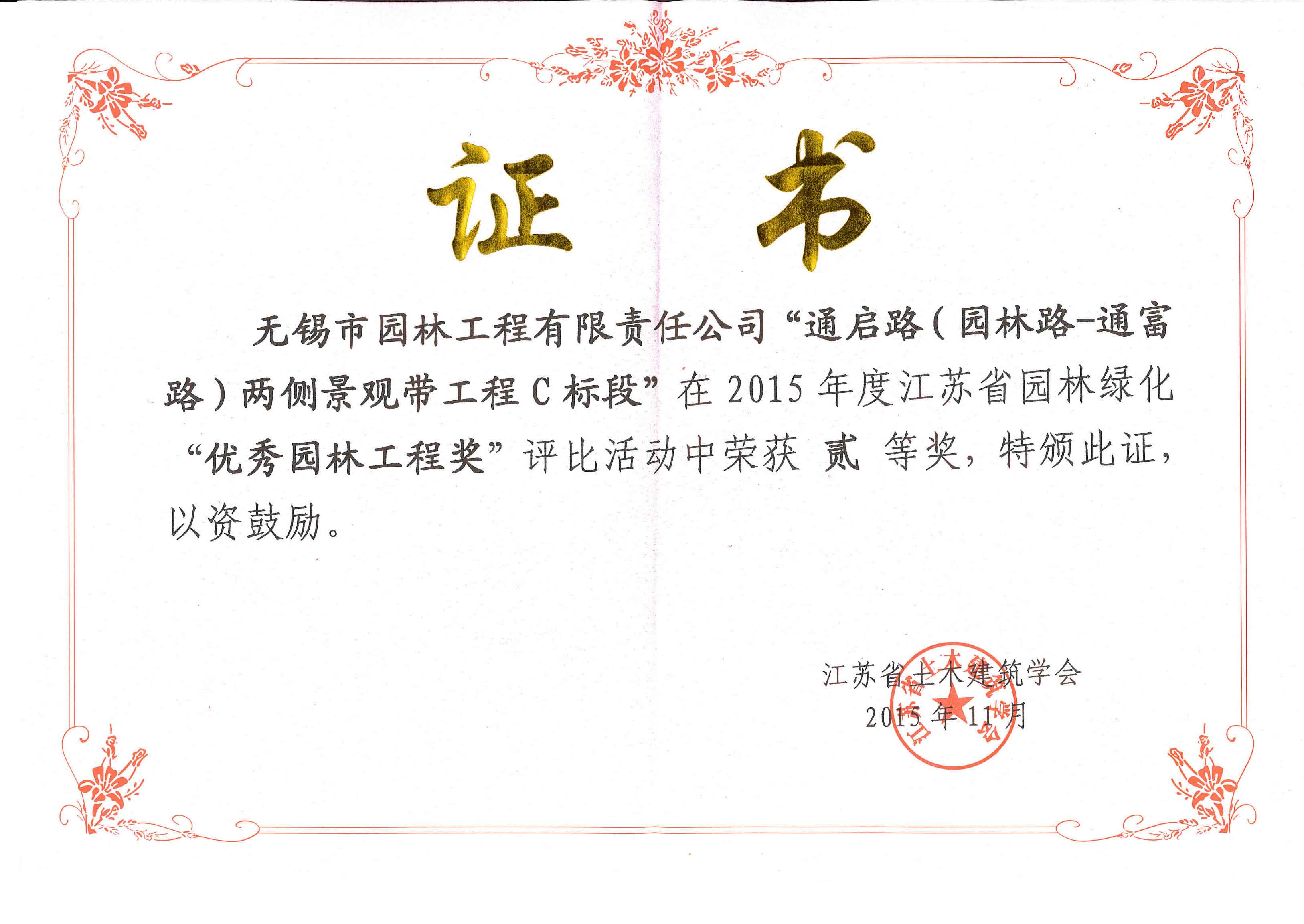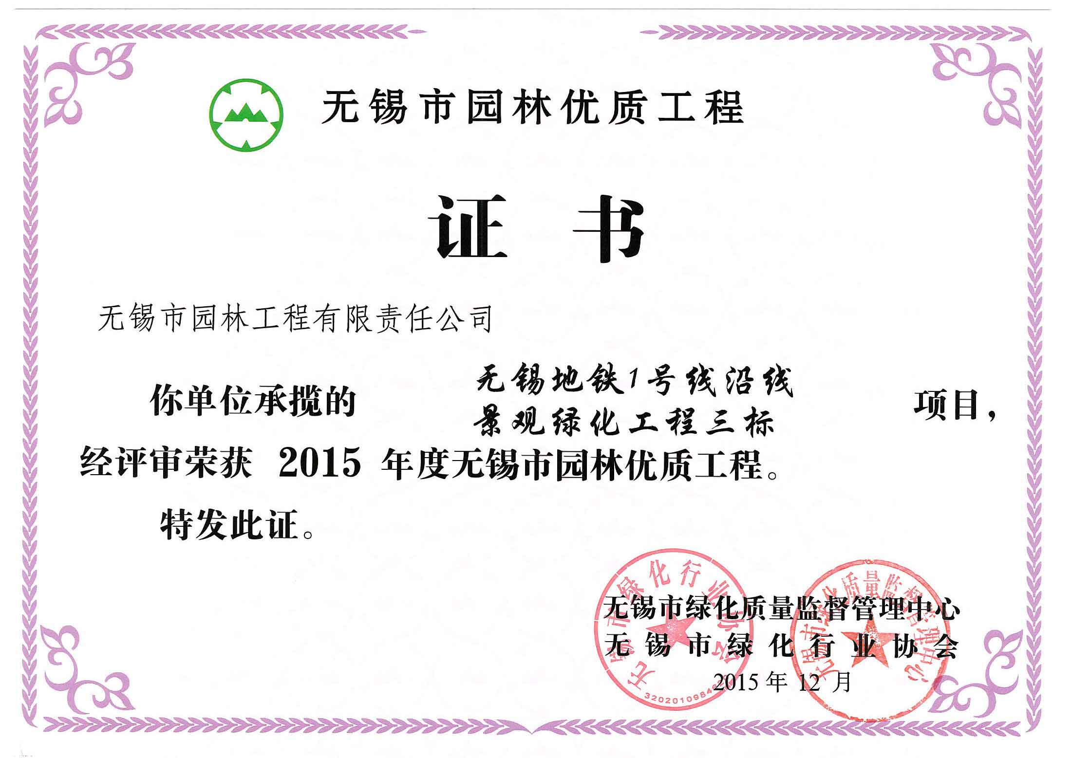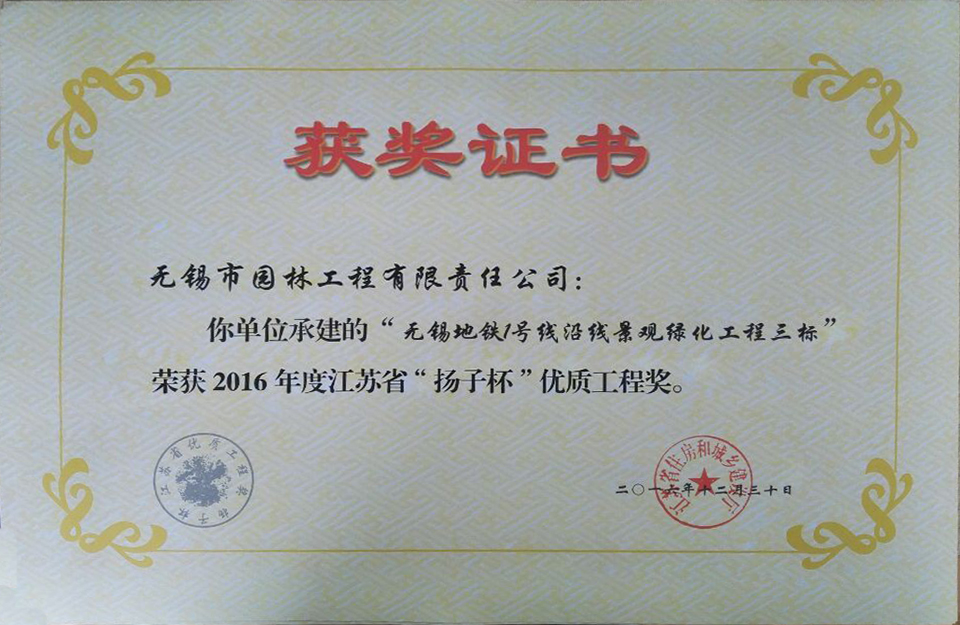 2016揚子杯——無錫地鐵1號線沿線景觀綠化工程三標