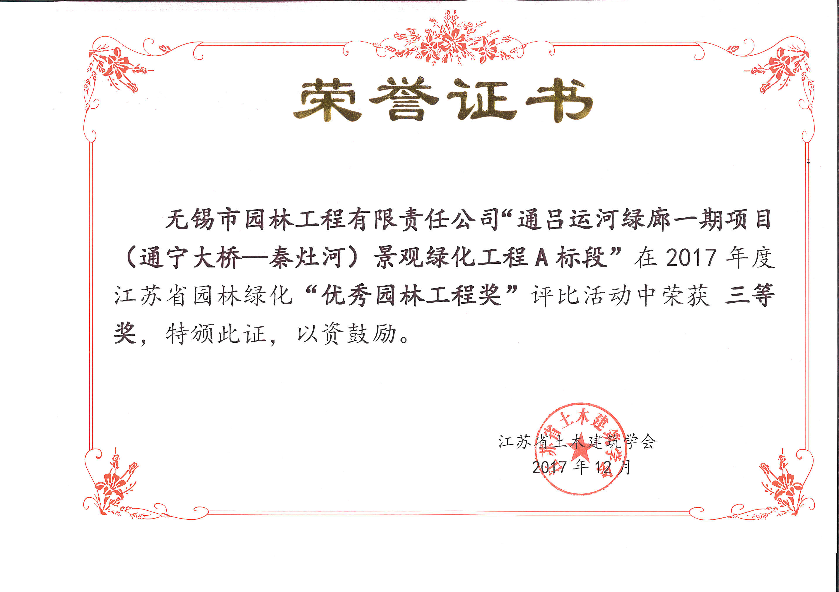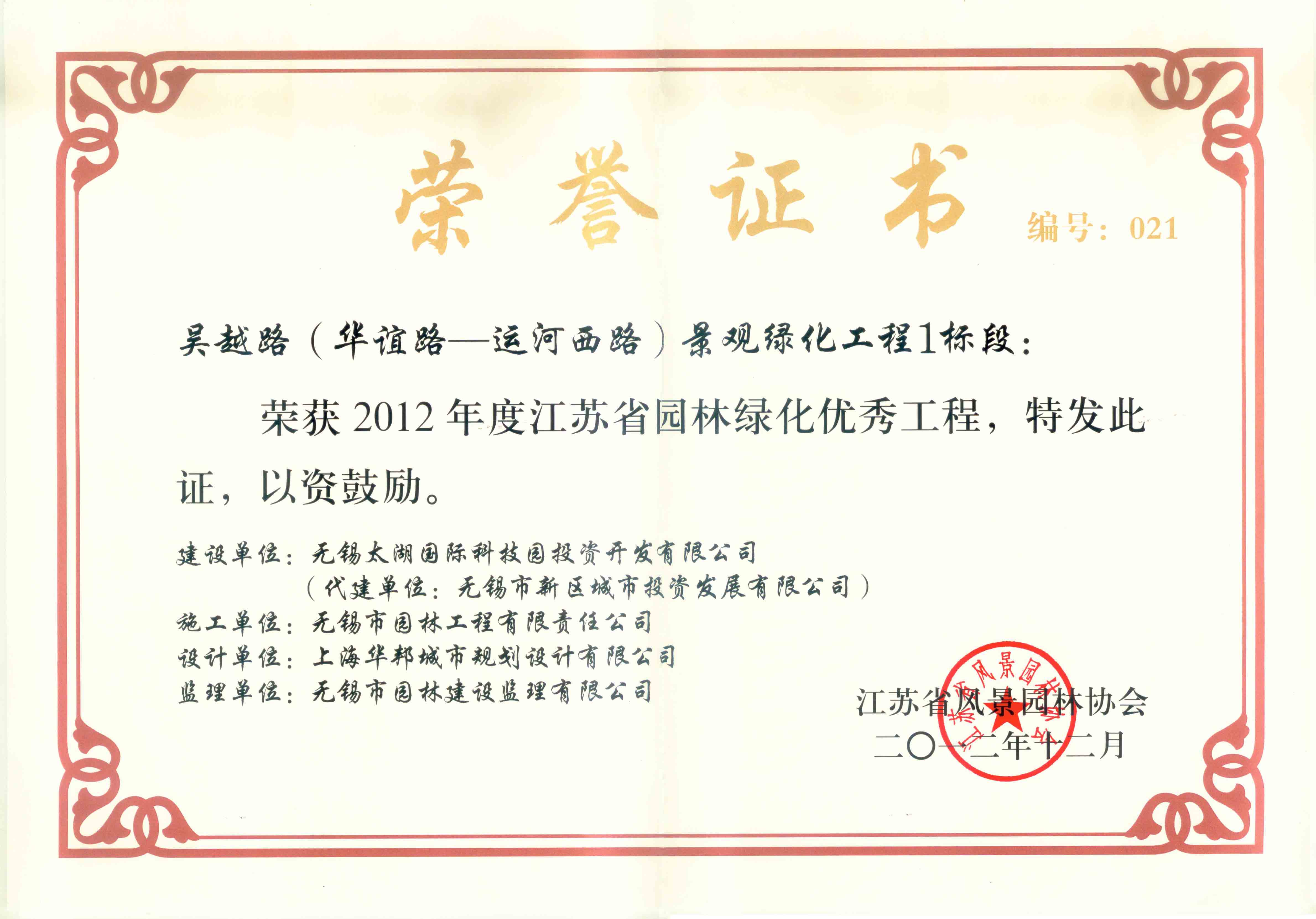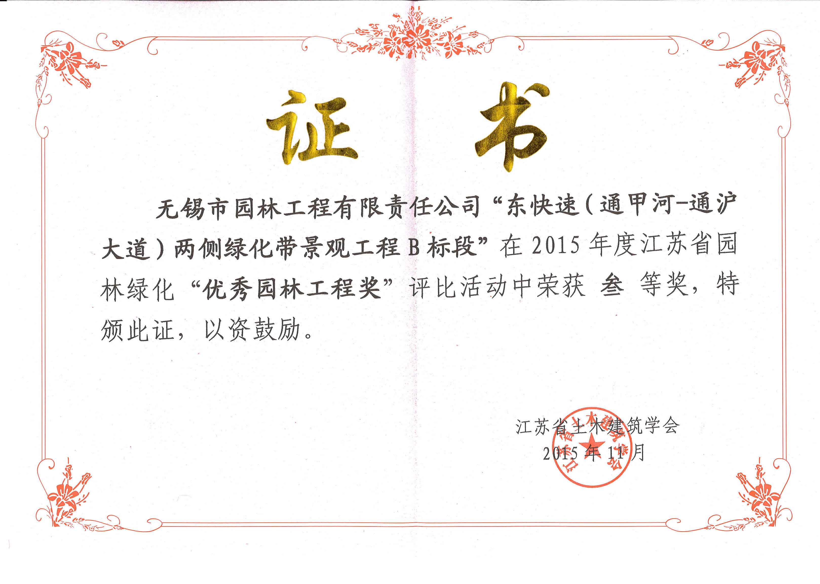 2016揚子杯——無錫地鐵1號線沿線景觀綠化工程三標