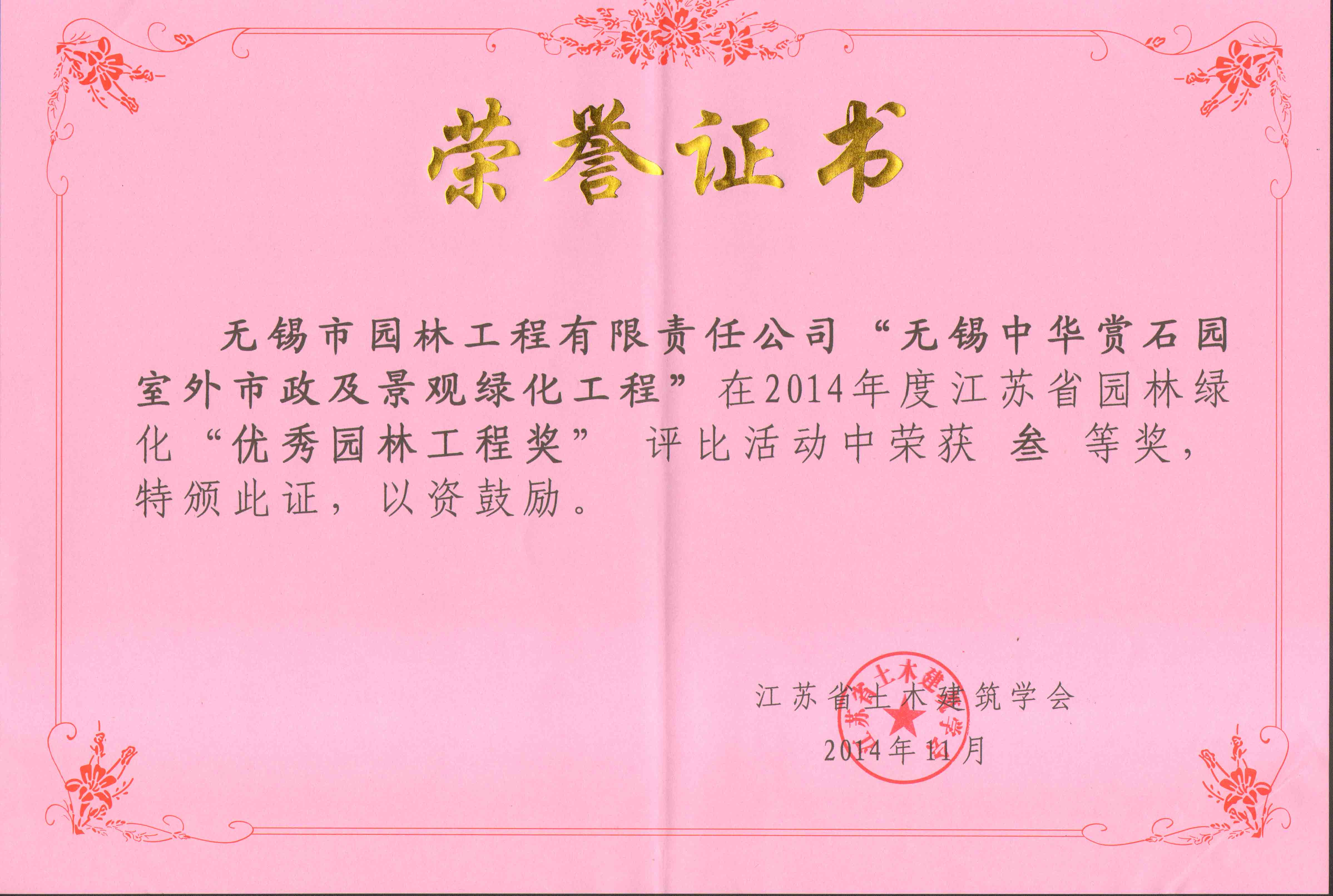 無錫中華賞石園室外市政及景觀綠化工程