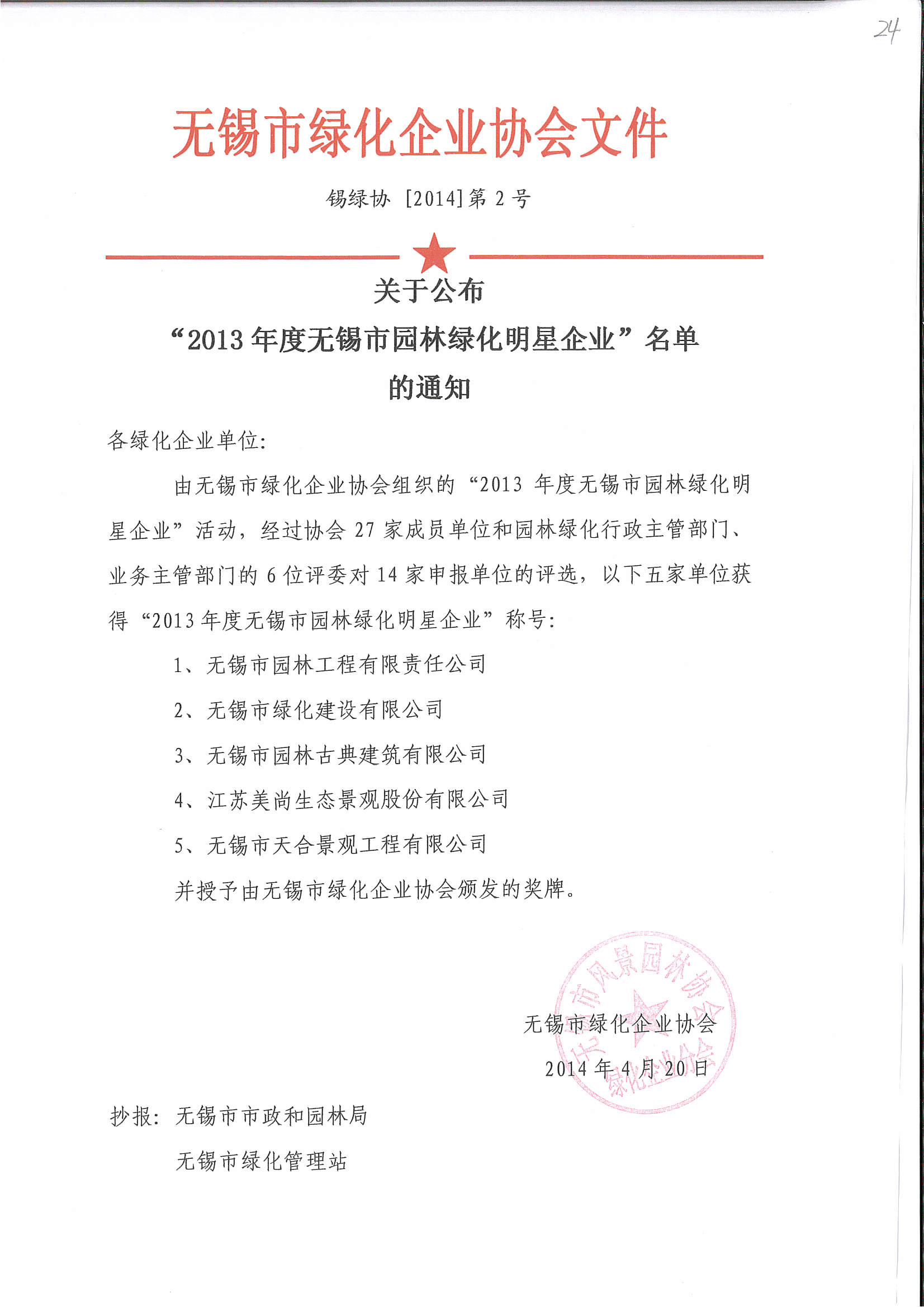 2013年度無錫市園林綠化明星企業