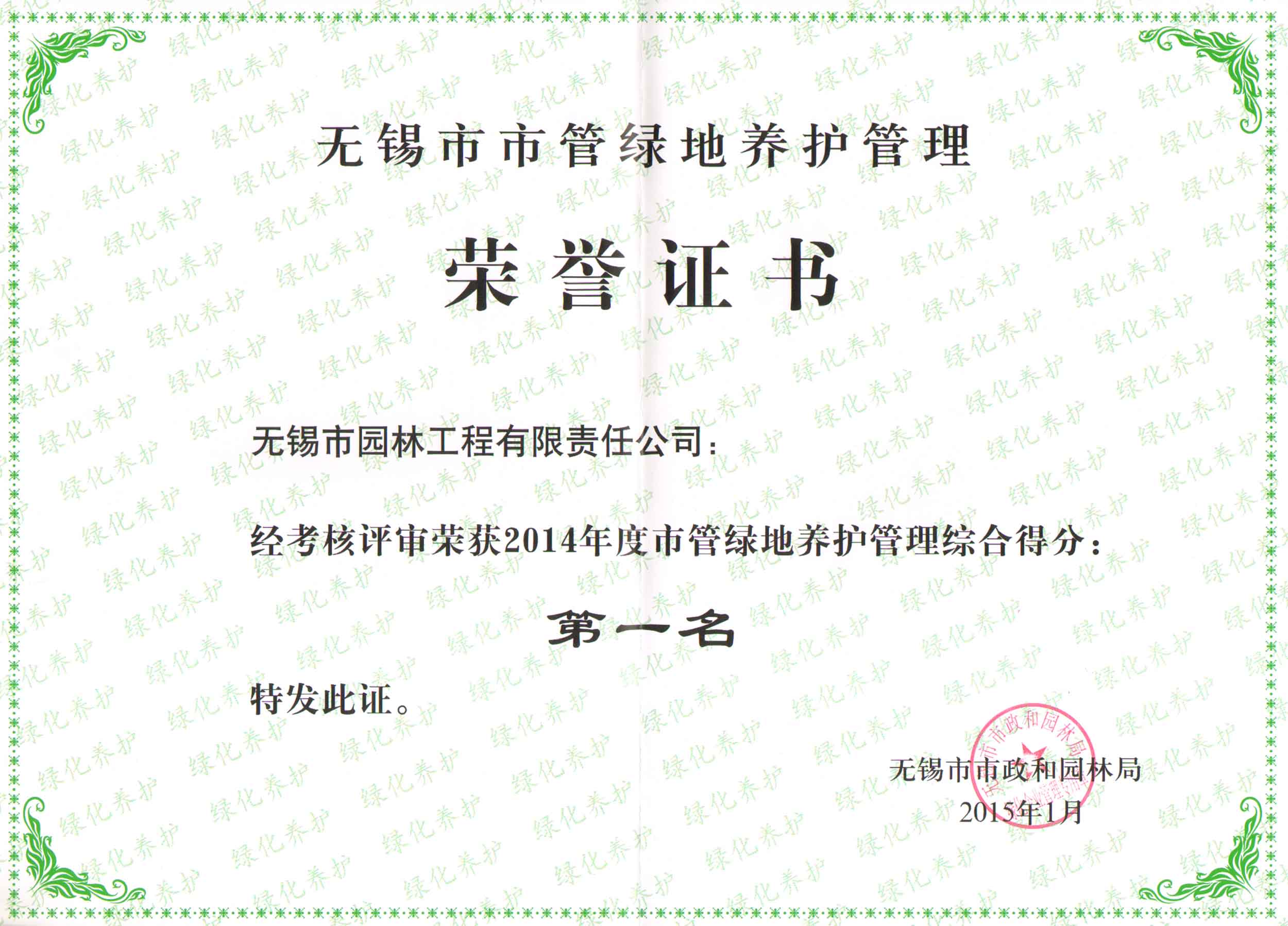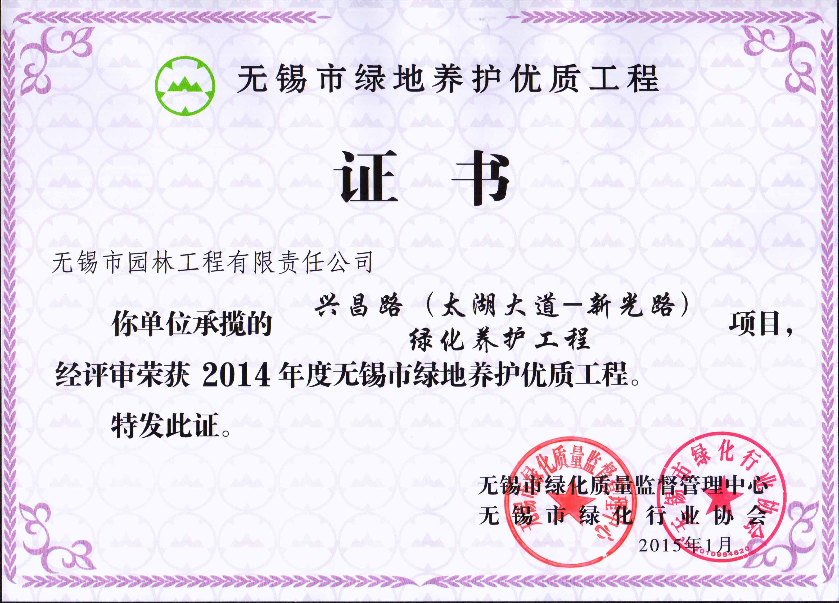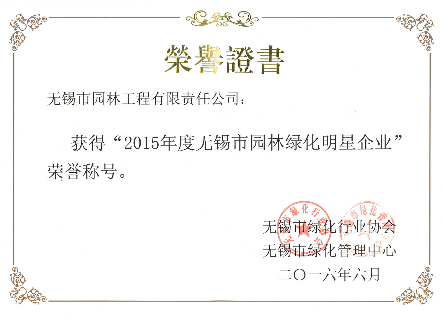 2015年度無錫市園林綠化明星企業