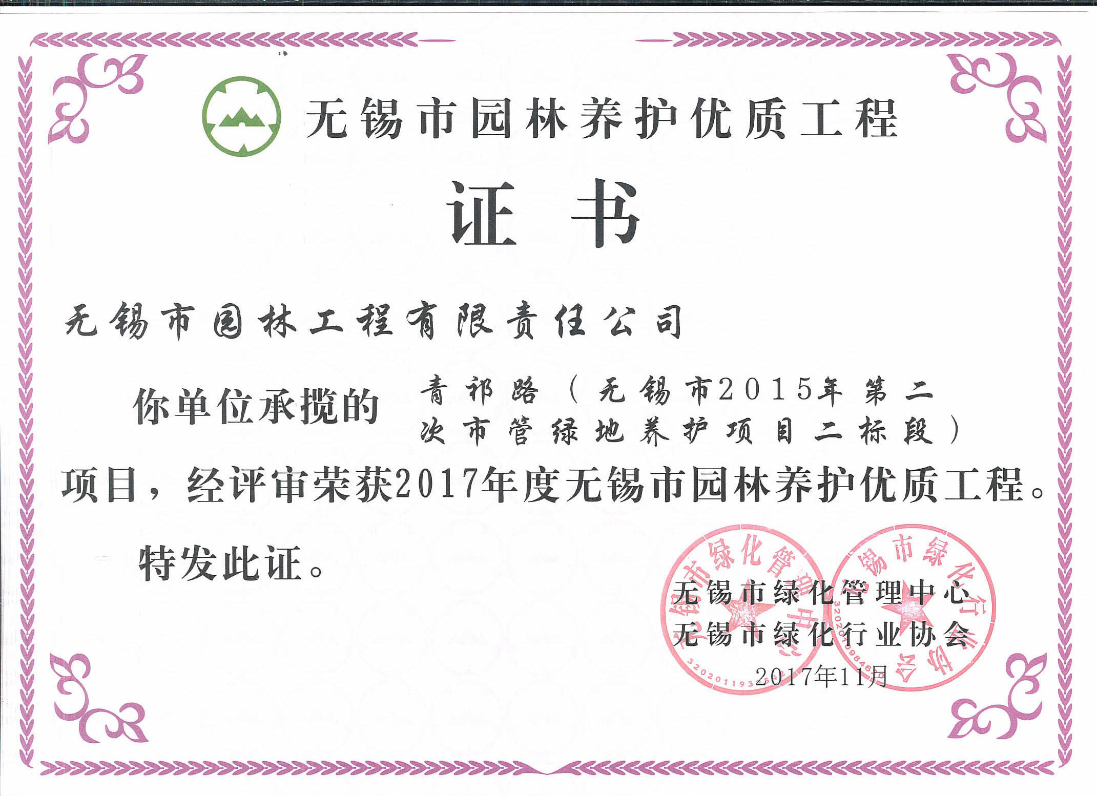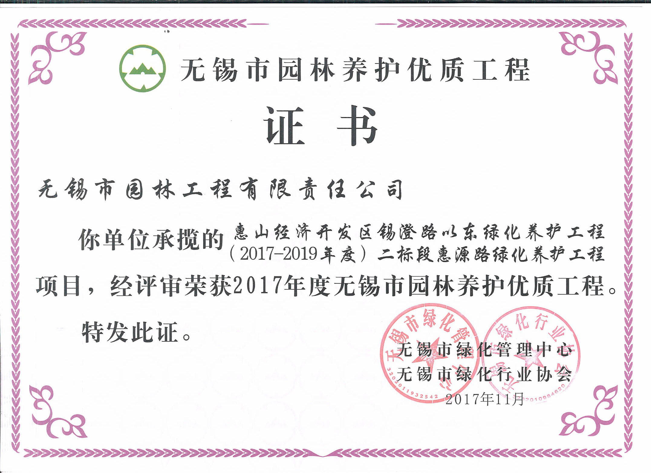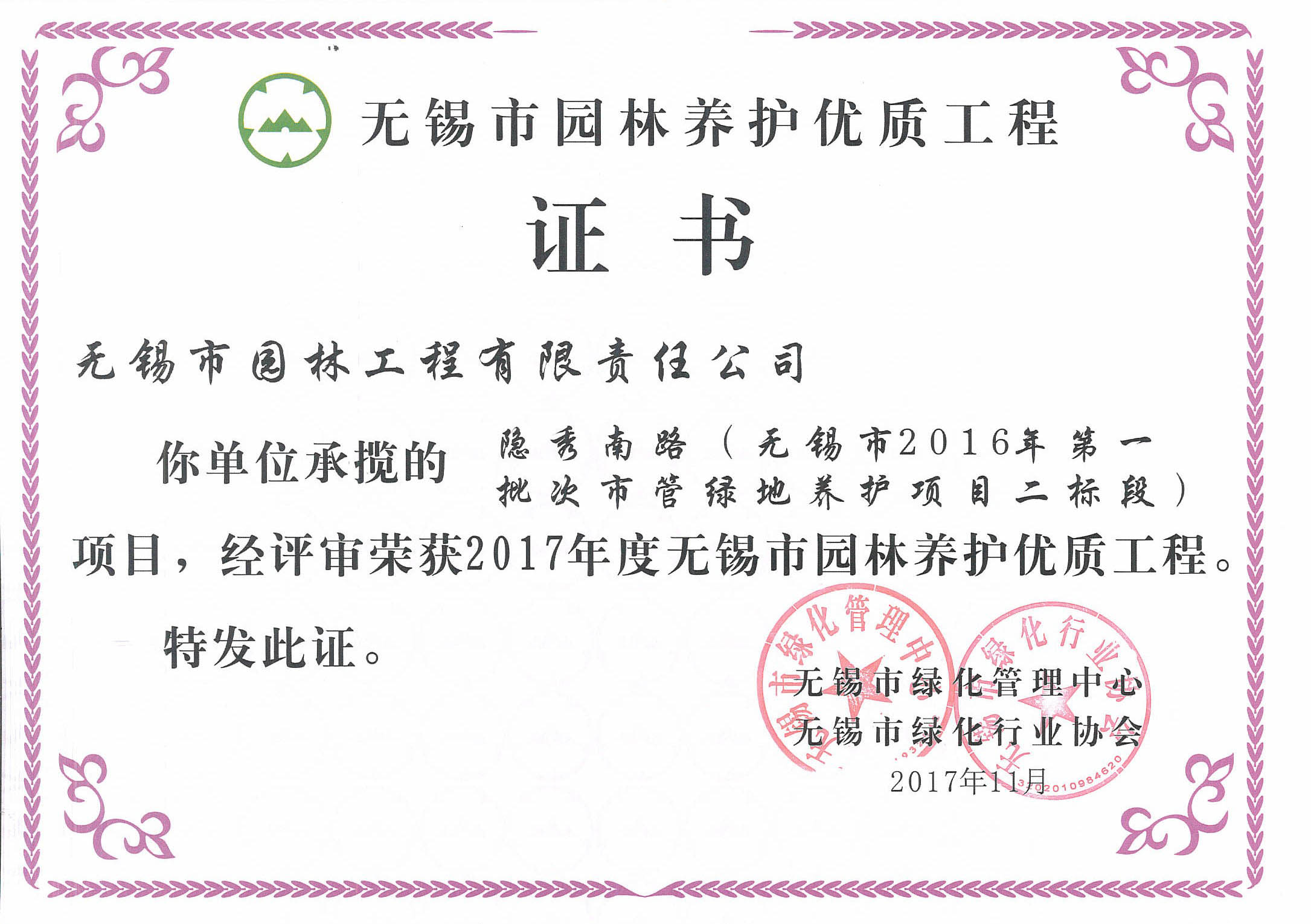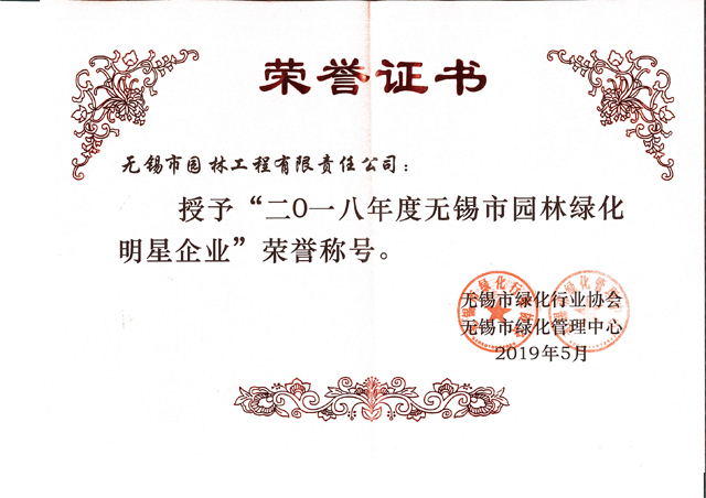 2017-2018無錫市綠化工作先進單位