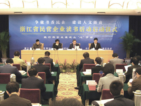 2010年4月22日,國(guó)圖總公司和浙江省工商局、浙江省民營(yíng)企業(yè)發(fā)展聯(lián)合會(huì)在杭州舉行浙江省民營(yíng)企業(yè)讀書活動(dòng)啟動(dòng)儀式。浙江省委副書記夏寶龍、總公司副總經(jīng)理朱曉捷、浙江省工商局局長(zhǎng)鄭宇民等出席,100多名浙江民營(yíng)企業(yè)家代表參加儀式。