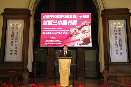 2015年9月10日,紀(jì)念世界反法西斯戰(zhàn)爭(zhēng)勝利70周年中國(guó)書展在新西蘭皇后鎮(zhèn)拉開帷幕,本次書展由公司與新中文化藝術(shù)交流中心聯(lián)合舉辦。中宣部副部長(zhǎng)孫志軍、中國(guó)駐基督城總領(lǐng)事金智健、新中文化藝術(shù)交流中心主席郭宏分別為書展致辭,國(guó)圖集團(tuán)公司副總經(jīng)理朱曉捷主持開幕式。